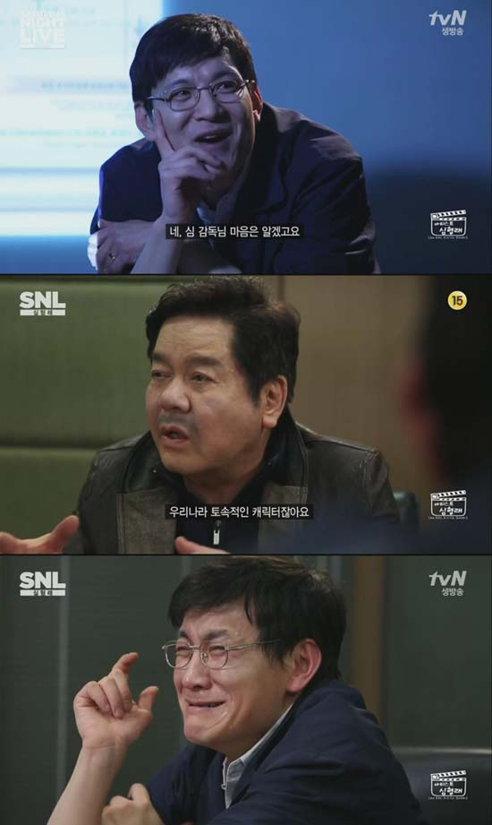진중권 교수를 패러디한 개그맨 정성호가 진중건으로 변신해 심형래 감독의 손을 꼭 붙잡고 눈물을 흘렸다. tvN 'SNL 코리아'를 통해 공개된 '아티스트 심형래'에서 진중권 교수를 패러디한 정성호가 '모두 까기 필름' 대표 '진중건'으로 변신해, 영화 투자자들에게 "아 그래서 이번 영화는 할리우드뿐만 아니라 발리우드까지 진출할 예정입니다"라고 말하자 박수가 터져 나왔다. 이에 한 투자자가 "아주 훌륭하고만 감독은 누구로 정했나?"라고 묻자 진중건은 "지금 섭외 중인 감독은 봉준호, 윤제균..."이라고 말하자, 누군가가 "잠깐!"이라고 외친다. 깜짝 놀란 투자자들과 진중건이 그를 바라보자, 밝게 웃는 심형래의 얼굴에 광채가 빛나고 몸에 후광이 빛난다. 이어 한 투자자가 깜짝 놀라며 "당신은? 신지식인 1호?"라고 묻자 심형래가 "그렇습니다. 대한민국의 신지식인 1호, 심형래입니다"라고 말한다. 또 다른 투자자가 "심 감독이 이 영화 소화할 수 있겠어? 영구로 웃길 것도 아닌데 말이야"라고 무시를 한다. 심형래는 "저는 제 영화를 우습게 보는 사람들 때문에 우리나라 영화 발전이 안 되고"라고 말하자 진중건이 "예~ 심 감독님 마음은 알겠고요"라고 잘라 말한다. 이에 심형래가 힘있는 목소리로 "아니 왜 다 안 된다고 생각하십니까? 못해서 안 하는 게 아니라 안 하니까 못 하는 것입니다"라고 말한다. 또 심형래는 "'이무기'는 정말 우리나라 토속적인 캐릭터잖아요. 저는 누구나 볼 수 있게 글로벌하게 갑니다. (제가 만든) 다음 영화 한 번 보시죠"라고 말하자, 심형래 감독이 할리우드 영화 '엑소시스트'를 패러디한 '엑소시스트 directed by 심형래'에서 한 외국인 퇴마사가 침대에 묶여진 귀신(악마) 들린 미국인을 치유하기 위해 우리나라 고유의 '아리랑'을 불러준다. 한 외국인 퇴마사는 차분하게 천천히 "아리랑 아리랑 아라리요 나를 버리고 가시는 님은 십 리도 못 가서 발병 난다. 아리랑 아리랑 아라리요 아리랑 고개로 넘어간다"라고 노래를 부르자 우리 민족의 한(恨)이 담긴 영화 '디워' OST 수록곡, 'Arirang'이 흘러나온다. 우리나라 고유의 민요 '아리랑'으로 귀신 들린 미국인이 치유를 받는다는 감동적인 스토리에 영화가 끝나자 투자자들이 모두 일어나 박수를 치며 눈물을 흘린다. 이어 진중건도 참았던 눈물을 흘리고 양손으로 심형래의 손을 꼭 붙잡으며 "심 감독님, 못해서 안 하는 것이 아니라 안 해서 못하는 것인지 이제 알았습니다. 영화 잘 부탁드립니다"라고 말해 관객들에게 감동을 자아냈다. 이에 심형래 감독은 진중건과 투자자들에게 온화하고 따뜻한 목소리로 "앞으로 우리나라 고유의 SF 영화를 만들어 보겠습니다"라고 말한다. 이어 진중건과 투자자들이 기립 박수를 치는 가운데 진중건은 또다시 양손으로 심형래의 손을 꼭 붙잡자, 심형래는 진중건에게 정중하게 "감사합니다"라고 말한다. 진중건과 심형래가 하나가 되어 훈훈한 모습에 관객들을 감동케 했다.