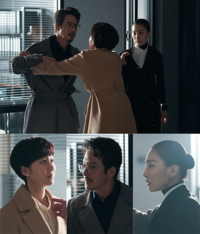 ‘SKY 캐슬’ 18회에서는 염정아, 정준호, 김서형의 살벌한 삼자대면이 펼쳐진다.JTBC 금토드라마 ‘SKY 캐슬’(극본 유현미, 연출 조현탁)이 오늘(19일) 밤 18회 본방송을 앞두고, 김주영(김서형)을 찾아간 한서진(염정아)과 강준상(정준호) 부부의 스틸을 공개했다. 지난 18일 방송된 17회에서 시험지를 유출하고, 황우주(찬희)에게 김혜나(김보라) 살해 누명을 씌운 주영의 악행이 서진에 이어 준상에게까지 알려졌기 때문. 시험지 유출이 강예서(김혜윤)의 인생을 뒤흔들어놓을 수도 있는 가운데, 서진과 준상의 선택이 남은 전개에 관전 포인트로 떠올랐다.주영이 혜나를 만났다는 정황과 시험지 유출이 명백해지자 “틀림없이 김주영 그 여자가 혜나를 죽인 거야”라고 확신한 서진. 그러나 시험지 유출이 밝혀지면 예서의 기말고사는 0점 처리되고, 자퇴를 하거나 퇴학을 당할 것이 뻔했다. 그동안 예서의 서울의대 합격을 향해 달려왔던 서진이 그런 결과를 가만히 보고만 있을 리 없었다. 서진은 양심의 가책을 느끼면서도, 이수임(이태란)의 간절한 부탁을 외면했고, 예서의 의심까지 잠재우고자 했다. 하지만 예서가 주영의 사무실에서 찾은 혜나의 열쇠고리로 우주의 누명을 벗기겠다고 나서자 결국 시험지 유출에 대해 털어놓았다. “예서야, 엄마 네 인생 너 절대로 포기 못해”라는 절박한 눈물과 함께였다.한편, 혜나가 친딸임을 몰랐다는 것에 고통스러워하던 준상은 어머니 윤여사(정애리)를 탓하며 울분을 토해냈다. 윤여사의 바람처럼 학력고사 수석, 의대 합격, 의사의 길을 걸었던 준상. 하지만 이제는 “어머니가 병원장 되라고 해서 그거 해보려고 기를 쓰다, 내 새낀 줄도 모르고 혜나를 죽였잖아요”라며 지난 인생을 후회하고, 자신을 그렇게 만든 윤여사를 원망했다. 기조실장에 병원장까지, 성공이라는 욕망을 좇던 준상의 인생은 혜나의 죽음으로 무너져 내리고 있었다.서진은 예서를 위한 절박한 심정으로 주영의 손을 다시 잡았고, 준상은 자신이 혜나를 죽였다는 후회와 죄책감에서 벗어날 수 없었다. 부부가 혼란을 겪고 있는 가운데, 지난 17회 엔딩에서 서진과 예서의 대화를 듣게 된 준상. 모녀가 주영을 진범으로 의심하고 있는데다가, 시험지 유출 문제가 엮여있다는 모든 사실을 알게 됐다. 준상이 주영을 찾아가면서 새로운 파란을 예고한 엔딩처럼 오늘(19일) 공개된 스틸 컷에도 서진, 준상과 주영의 긴장감 가득한 삼자대면이 담겼다. 뒤늦게나마 자신의 잘못을 후회하는 준상이 서진과 주영의 악행을 막을 수 있을지 이목이 집중된다.제작진은 “오늘(19일) 밤 방송에서 주영의 악행을 알게 된 준상이 직접 주영을 찾아간다. 하지만 서진의 입장에서 주영은 악마인 동시에 딸 예서의 인생을 쥐고 있는 사람”이라며, “혜나 살해 진범으로 의심 받고 있는 주영의 앞에서 부부가 어떤 선택을 내릴지 마지막까지 지켜봐달라”고 전했다.