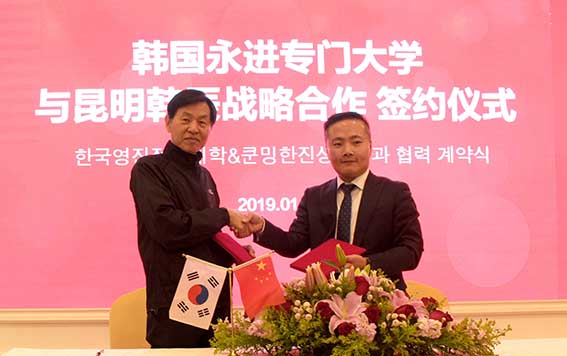 영진전문대는 지난 20일 중국 쿤밍(昆明)시 소재 쿤밍한진의료미용의원과 국제주문식교육협약을 체결했다고 지난 25일 밝혔다.이번 협약으로 영진전문대는 2019학년도에 국제의료관광반(국제관광조리계열)을 개설, 국제의료관광 전문가 양성에 박차를 가할 계획이다.쿤밍한진의료미용병원은 중국 금융자본에 한국 의료기술을 접목해 개설된 중국 내 우한(武漢), 난징(南京)에 지원(支院)을 둔 중국의 최신 대형 의료미용병원이다.질 높은 한국의 선진 의료기술과 의료서비스를 지향하고 있어, 현지에서 높은 주목을 받고 있다.올해 개설될 국제의료관광반(관광외국어통역전공)은 중국, 일본 등 외국인 환자 유치와 상담에 필요한 전문 인재를 양성할 목표로 외국어와 의료 분야 교과목을 50%씩 구성, 외국어와 의료분야 지식을 집중적으로 교육하는 특화된 주문식교육 협약반이다.영진전문대는 국내 행복한재활의학과의원, 대구파티마병원, 대구의료관광진흥원은 물론 해외 의료기관인 중국 우한한진의료미용병원 등 다수의 의료기관과 산학협력을 체결했다. 이로써 올해 신설될 국제의료관광반은 해외 협력병원과 연계된 현장 실습으로 해외취업에 더욱 탄력을 받을 것으로 전망된다. 국제의료관광반 졸업자는 관련 업계 2년 근무 경력을 갖출 경우, 산업인력공단이 시행하는 국제의료관광코디네이터 국가기술자격시험에 응시 자격이 주어진다.국제의료관광반(2년 과정, 야간)은 산업체 위탁과정으로, 인문계 고교를 졸업하고 산업체 재직 9개월 경과한 자와 전문계 고교를 졸업하고 입학당시 산업체에 재직 중인 자는 수능 응시 여부와 상관없이 누구나 지원할 수 있다. 입학과 관련한 문의는 영진전문대 국제관광조리계열(053-940-5406)로 하면 된다.
