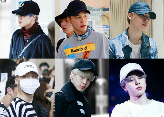 연예인들이 공항패션에서 마스크와 함께 즐겨 활용하는 패션 아이템 중 하나가 볼캡모자다.스트리트적인 분위기를 쿨하게 연출하거나 무방비 상태에서 카메라에 노출되었을 때에도 유용해서 '방탄소년단 지민'도 자주 착용한다.섹시함과 귀여움을 동시에 지닌 '방탄소년단 지민'은 특히나 예쁜 두상과 작고 하얀 얼굴로 평소 패션 아이템으로도 볼캡 모자를 자주 활용하여 '소년미'와 '남친미' 넘치는 비주얼을 완성한다.