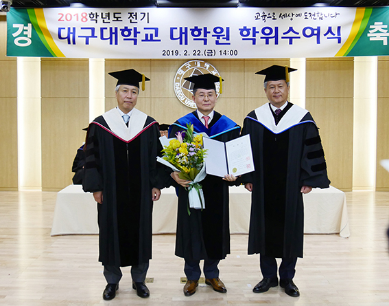대구대학교가 우상현 W병원장과 최계희 ㈜비스마트 회장에게 명예박사 학위를 수여했다.대구대는 지난 22일 경산캠퍼스 일원에서 ‘2018학년도 전기 학위수여식’을 개최했다. 학부는 이날 오전 11시 각 단과대학에서, 대학원은 오후 2시 성산홀 강당에서 각각 치러졌다.이날 학위수여식에서는 38명의 박사, 224명의 석사, 3,454명의 학사 졸업생들이 영예의 학위를 수여받았다. 특히 우상현 W병원장과 최계희 ㈜비스마트 회장은 각각 명예이학박사와 명예경영학박사 학위를 받았다.우 원장은 지역을 대표하는 의료인으로서, 선친인 고(故) 송원 우복원 대구대 교수의 뜻을 받을어 매년 교직원과 학생들의 화합을 위한 송원테니스대회를 개최하고, 체육학과 학생들에게 송원장학금을 전달하는 등 대학 발전에 기여했다.