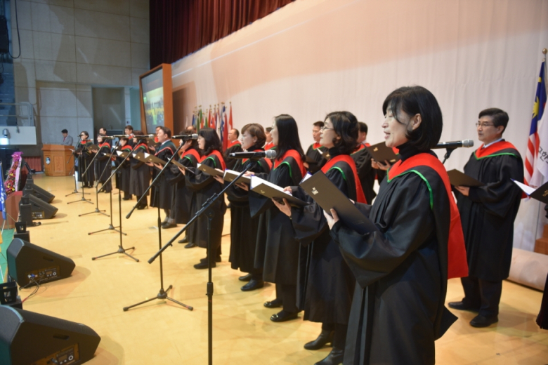 대구한의대학교 교직원 합창단 “하니하모니 합창단”은 지난 25일 기린체육관에서 개최된 입학식에서 이탈리아 가곡 ‘푸니쿨리 푸니쿨라’를 부르며 창단 첫 공연을 가졌다. 출범 4개월 만이다. 하니하모니 합창단의 첫 공연에 체육관을 가득 메운 신입생 1,600여명과 학부모들은 앵콜로 화답했으며, 대학 구성원들은 기대 이상의 실력에 큰 박수를 보냈다. 학교의 영문 이름으로 팀명을 정한 하니하모니는 대구한의대의 올해 건학 60주년을 자축하고 캠퍼스에 화음을 울리자며 지난해 11월 교수와 직원 20여명이 모여 결성됐다.단원들은 바이오산업융합학부와 기초교양대학, 의료원, 행정부서 등 다양한 전공과 행정부서에서 참여했다. 합창단 지휘는 음악을 전공하고 EK뮤직 연주단을 이끌며 대구한의대에서 강의하는 김은경 교수가 재능을 기부하고 있다. 또한 대구 인칸토솔리스트앙상블을 이끄는 안성국 성악가와 김소원 연주자는 발성법을 지도하고 피아노 반주를 맡아 지도하고 있다.