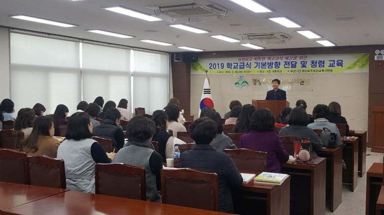 경산교육지원청(교육장 김영윤)은 2019학년도 신학기를 대비하여 관내 단설유·초·중·고·특수학교 영양교사 48명을 대상으로 삶의 힘을 키우는 따뜻한 경산 학교급식을 위한 2019 학교급식 기본방향 전달 및 학교급식 청렴문화 생활화를 위한 청렴교육과 신규 나이스 급식시스템 사용자 교육을 실시했다.