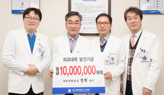 대구가톨릭대병원은 12일 피부과 정현 명예교수가 대구가톨릭대 의과대학에 발전기금으로 1천만원을 기부했다고 밝혔다.