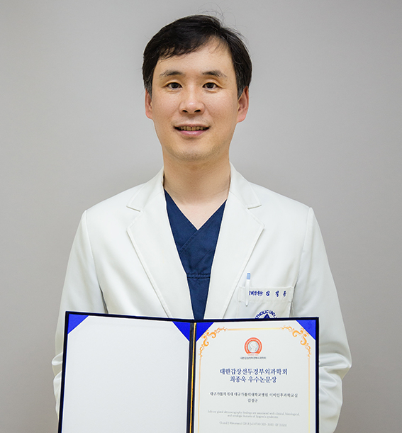 대구가톨릭대병원은 최근 이비인후과 김정규 교수(사진)가 강원도 하이원 리조트에서 열린 대한갑상선두경부외과학회에서 '타액선 초음파 소견과 쇼그렌 증후군의 임상적, 조직학적, 혈청학적 특징의 연관성' 논문으로 '최종욱 우수논문상'을 수상했다고 지난 13일 밝혔다.김 교수는 논문을 통해 "이하선과 악하선의 초음파 소견을 통합해 점수화한 값이 입술소타액선 조직검사, Ro자가항체 혈액검사, 타액분비속도와 통계적으로 유의한 상관관계를 보인다"며 "쇼그렌 증후군의 진단에 있어 타액선 초음파 검사의 유용성을 확인할 수 있었다"고 전했다.수상 후 김 교수는 "갑상선두경부외과학회의 초음파위원장으로 활동하면서 이룬 연구성과를 인정받을 수 있어 매우 기쁘다"며 "이번 연구를 위해 가르침과 도움을 주신 류마티스내과 최정윤 병원장과 김지원 교수께 감사를 드린다"고 소감을 전했다.