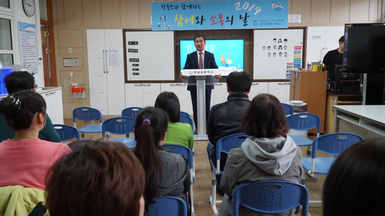 부남초 구자룡 교장은 “올해부터는 학부모가 교육활동에 참여할 수 있는 기회를 적극적으로 제공하여 부남교육공동체가 함께 이끌어 가는 학교를 만들겠습니다. 또한 지속적인 학부모 의견수렴을 통해 수요자가 만족할 수 있는 학교 교육활동을 전개해 나갈 수 있도록 하겠다.”고 말했다.