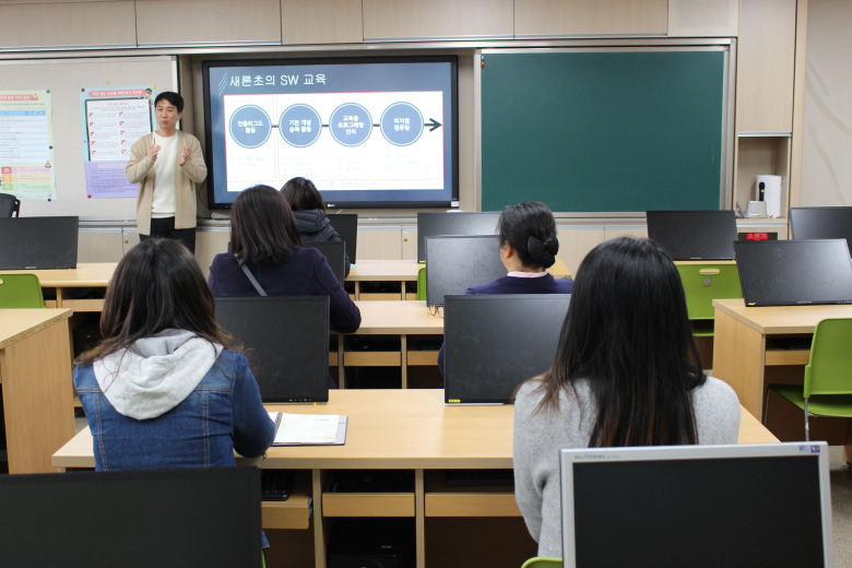 대구 새론초등학교는 지난 16일(토) 기존 학생과 전입생의 정보 격차를 줄이기 위해 스마트기기가 제공되는 3학년부터 6학년 전입생 및 학부모를 대상으로 토요스마트 교실을 정보실에서 운영했다고 지난 19일 밝혔다.새론초는 소프트웨어교육 및 디지털교과서 선도학교로서 스마트기기 활용 수업, 온라인 기반 협력학습, 스마트 프로젝트 학습을 통해 학생의 컴퓨팅 사고력 향상을 위해 노력하고 있다. 이에 기존 학생과 새롭게 전입한 학생들 간의 정보 격차가 존재할 수 있다는 사실을 인지하고 이런 격차를 줄이기 위해 전입생 및 학부모를 대상으로 토요스마트 교실을 운영했다.이번 토요스마트 교실은 전입생과 학부모 교육을 각각 운영했으며 학생들은 디지털교과서 활용 안내, 소프트웨어 교육, 정보통신 윤리교육 등의 내용에 대해 배웠다. 학부모들 대상으로는 초등교육 및 대구미래역량교육의 방향과 소프트웨어 교육의 필요성, 학교에서 운영하고 있는 각종 소프트웨어 교육, 자녀와 가정에서 함께 할 수 있는 소프트웨어 교육 및 정보통신 윤리교육을 실시했다.