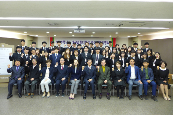 대구과학대학교는 지난 19일 교내 국제세미나실에서 박준 총장을 비롯한 보직교수들과 지도교수, 학생임원, 재학생 등 120여명이 참석한 가운데, 2019학년도 총학생회장을 포함한 47명의 학생임원임명식을 가졌다.