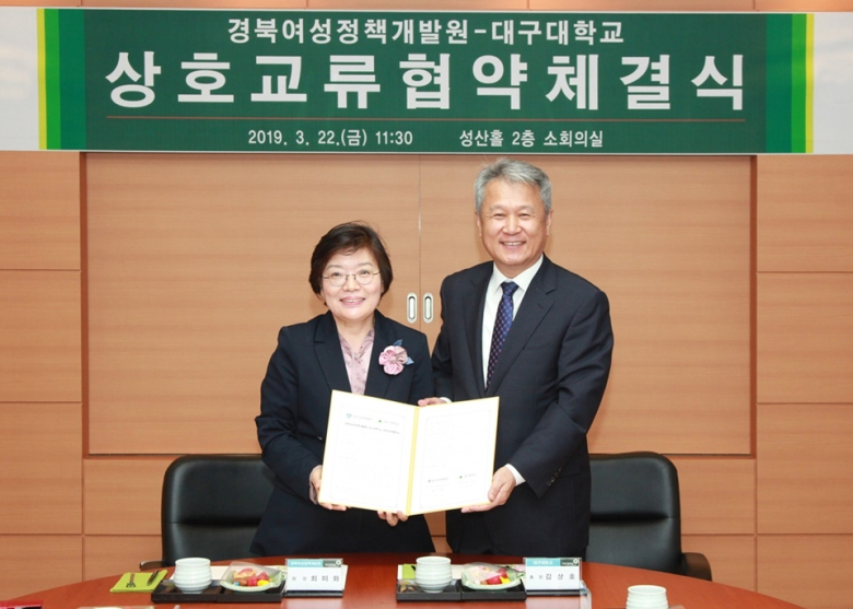 대구대는 지난 22일 성산홀 소회의실에서 김상호 총장, 최미화 원장 등 대구대 및 경북여성정책개발원 관계자가 참석한 가운데 협약식을 개최했다.