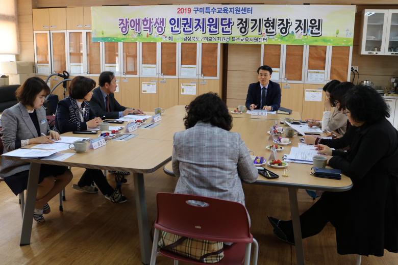 경상북도구미교육지원청(교육장 이백효)은 3월 27일 구미특수교육지원센터에서 장애학생의 인권보호 및 성폭력 예방을 위한‘장애학생 인권지원단’을 조직하고 전반기 협의회를 개최하였다. 구미특수교육지원센터 인권지원단은 구미교육지원청 교육지원과장을 단장으로 특수담당 장학사, 경찰서 여성청소년과 수사팀장, 대학교수, 성교육전문가, 상담전문가, 특수교사 등 각 분야의 전문가 10명으로 구성하여 장애학생 인권보호를 위한 지원체계를 구축하고 있다.구미특수교육지원센터 인권지원단은 관내 장애학생의 인권침해 예방 및 자기보호역량 교육과 학교 현장지원 역할을 하고 있다. 특히 장애학생 인권침해 사안 발생 시에는 현장을 직접 방문하여 유관기관과의 긴밀한 협력으로 장애학생의 피해를 최소화하는 등 특별현장지원을 실시하고 있다. 협의회에서는 ‘2019학년도 운영방향과 장애학생 인권침해 예방을 위한 구체적인 활동방향’과 구미초등학교 대상 3월 정기 현장지원을 실시하여 장애학생 인권보호 방안을 컨설팅하였다. 최원아 특수교육지원센터장(교육지원과장)은“장애학생 인권지원단 활동으로 장애학생의 인권을 보호하고 학교폭력 및 성폭력을 예방하여 안전하고 건강한 학교생활이 보장될 수 있도록 최선을 다하겠다고 밝혔다.