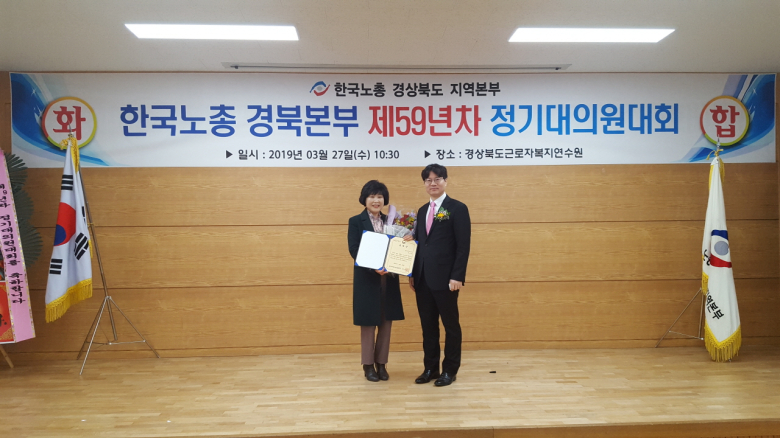 강분다 선생은 노동조합 운영위원으로서 노동조합 발전과 조직 강화, 고충처리위원으로서의 활동 등의 공로를 인정받아 수상하게 됐다.