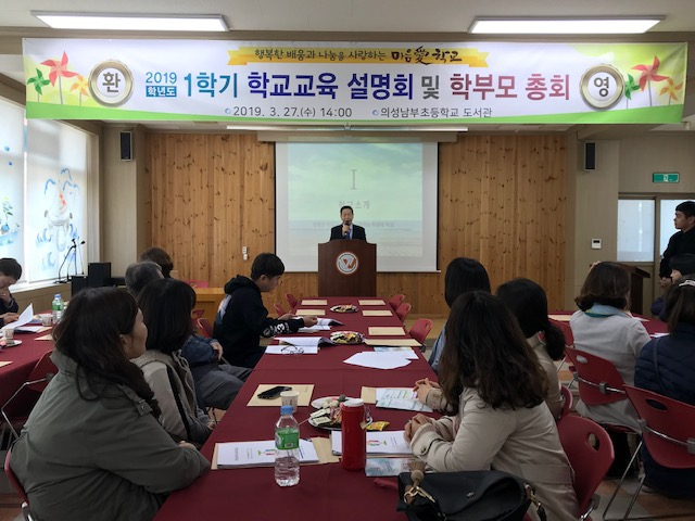 의성남부초등학교(교장 이성오)는 지난 27일 학부모 30여명이 참석한 가운데 2019학년도 1학기 학교 교육 설명회 및 학부모 총회를 가졌다. 이날 학교교육 설명회는 ‘교권보호 교육, 학교폭력 및 사이버폭력 예방교육, 교원능력개발평가 안내, 인성교육, 개인정보보호교육, 정보통신 윤리교육, 과정중심평가’ 등 다양하고 내실 있는 학부모 교육이 이루어졌다.