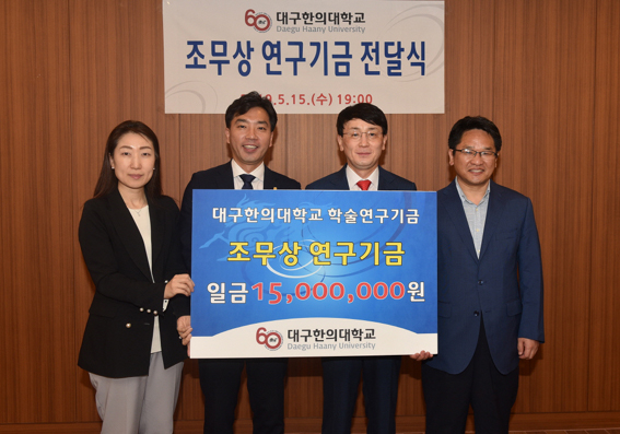 대구한의대학교는 스승의 날인 지난 15일 대구한방병원에서 한의학과 1기 졸업생으로 모교 발전을 위해 기부활동을 펼치고 있는 조무상 A3 한의원장의 연구기금 전달식을 가졌다.