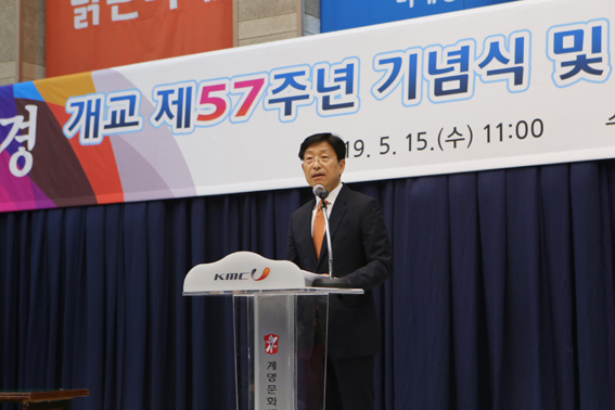 계명문화대는 지난 15일 대학 수녈관에서 정순모 법인이사장을 비롯한 교직원, 학생, 동문 등 3천여 명이 참석한 가운데 '개교 57주년 기념식' 행사를 가졌다고 지난 17일 밝혔다.