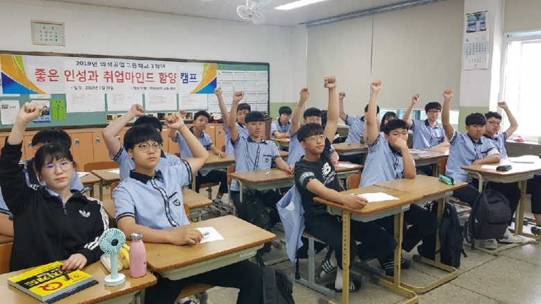 의성공업고등학교(교장 유권종)은 지난 20일 1학년 학생들의 취업역량강화 및 취업마인드 함양을 위해 교내캠프를 운영했다.이번 교육을 통해 학생들은 대인관계 차원의 좋은 인성 함양정신을 기르고 직장에서의 원만한 대인관계를 위한 인성 함양과 성공적인 취업 준비를 위한 취업마인드 및 진로 로드맵을 직접 구성해 볼 수 있는 기회를 가질 수 있었다. 유권종 교장은 개인 및 모둠 활동을 통한 창의적 교수법 활용으로 취업에 대한 강의식 수업이 아닌 체험과 실습, 미션 수행을 통해 활동적인 교육이 실시되었으며, 성숙한 인간관계와 바람직한 사회의 리더의 자질을 기를 수 있는 좋은 경험이 되었다고 발했다.