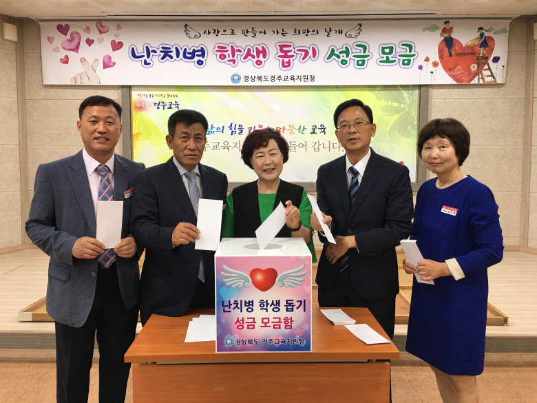 경주교육지원청은 23일부터 28일까지 전 직원 76명을 대상으로 ‘2019년 난치병 학생 돕기 성금 모금 행사’를 실시했다.