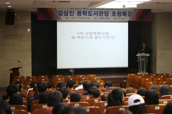 이날 김 관장은 '4차 산업혁명시대, 왜 책읽기와 글쓰기인가?'라는 제목으로 학생들이 창의성과 인성을 갖춘 인재로 성장하려면 반드시 글쓰기와 책읽기를 해야함을 강조했다.