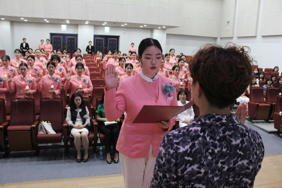 치위생과 권예은(21·여)씨 등 2학년 33명의 학생들은 이날 선서식에서 선언문 낭독을 통해 치과위생사로서의 올바른 삶과 자세에 대한 새로운 각오를 다짐했다.