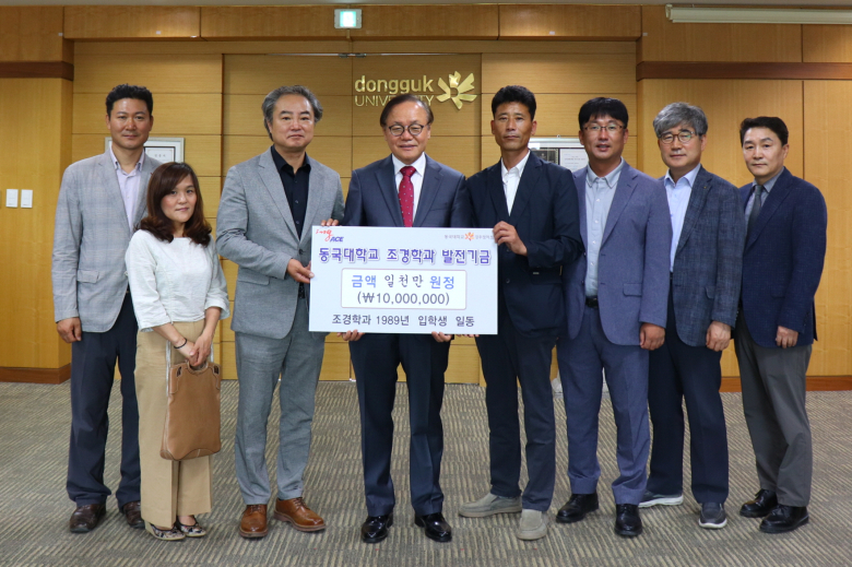 이번 발전기금은 올해 입학 30주년을 맞은 동국대 경주캠퍼스 조경학과 89학번 동문들이 성실하고 우수한 조경학과 후배를 지원하고 학과의 발전을 위해 뜻을 모아 조성한 것이다.