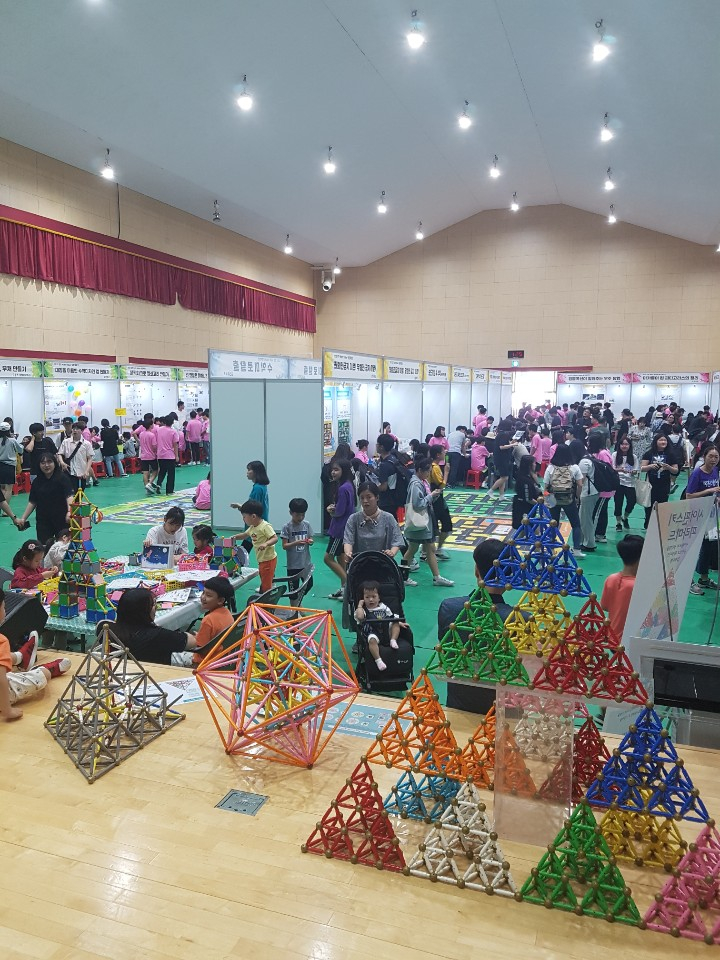 김천교육지원청은 지난 1일 김천생명과학고등학교 체육관에서 ‘신나는 수학! 탐나는 과학! 빛나는 김천교육!’을 주제로 ‘2019 제2회 김천 Math Maker 융합체험전’을 성황리에 개최해 큰 호응을 얻었다.이번 자유학기제 연계 김천 Math Maker 융합체험전은 김천 관내 수학 나눔학교를 비롯해 초·중·고등학교의 수학동아리, 수학영재학급 및 수학에 열정을 가진 학생들이 모두 주체가 됐다.이는, 초 ·중·고등학교 학생들이 보고 만지고 느끼는 체험활동을 통해 수학에 흥미를 가지게 될 뿐만 아니라 수학을 기반으로 과학·인문학·기술·예술 등 다양한 교과와 융합해 새로운 아이디어를 계발한다.또한, 이를 공유하면서 수학 학습에 동기 부여가 되기를 바라는 마음으로 마련했다.이어 막대 탄성 도미노인 스틱 밤(Stick Bomb) 수학이벤트가 불꽃이 터지듯 체험전의 시작을 알렸다.행사는 김천중·고등학교 음악동아리 ‘울림’과 ‘로그인’의 식전공연(오케스트라 합주와 밴드공연)과 개회식에 이어 금릉초등학교 수학 영재학급의 ‘테셀레이션 모자⦁부채 만들기’ 문성중학교의 ‘나는 미남?! 미녀?!’,등이 이어졌다. 더불어, 성의여자고등학교의 창의융합 체험부스 ‘입체도형 코딩하기’를 비롯한 43개의 체험 부스, 몸으로 활동하면서 체험할 수 있는 다빈치 서클, 그리드 돔, 스타돔, 32면체 대형축구공, 다빈치 다리 등의 야외 수학 구조물 체험, 보드게임 경진대회 등이 운영됐다.특히, 올해 새롭게 추가된 초등의 다빈치 코드와 중등의 라보카 보드게임 경진대회는 수학을 쉽고 즐겁게 받아들일 수 있는 행사가 되어 학부모와 학생들의 큰 호응을 얻었다.주말 가족단위 등으로 체험에 참석한 교육 가족들은 “수학을 쉽게 즐길 수 있게 되고 수학을 정보, 미술 등 다양한 교과와 융합하여 창작물을 만드는 과정을 통해 창의력을 키우는 기회가 되게 해 준 관계 기관에 감사드린다.”고 소감을 말했다.마숙자 교육장은 “김천 Math Maker 융합체험전을 통하여 학생들이 생활·교과서·4차산업혁명·놀이 등 다양한 상황 속에서 수학적인 힘을 느끼고 수학을 즐기게 되며, 수학을 과학·정보·인문학과 융합하면서 창의융합적인 사고를 함양할 수 있는 계기가 되기를 소망한다"며 "이번 체험전이 김천 지역 교사와 학생들의 저력을 보여 주었고, 융합적 수학 체험교육이 타 지역에 영향을 끼쳐 수학교육 활성화에 기여하기를 바란다”라 말했다.