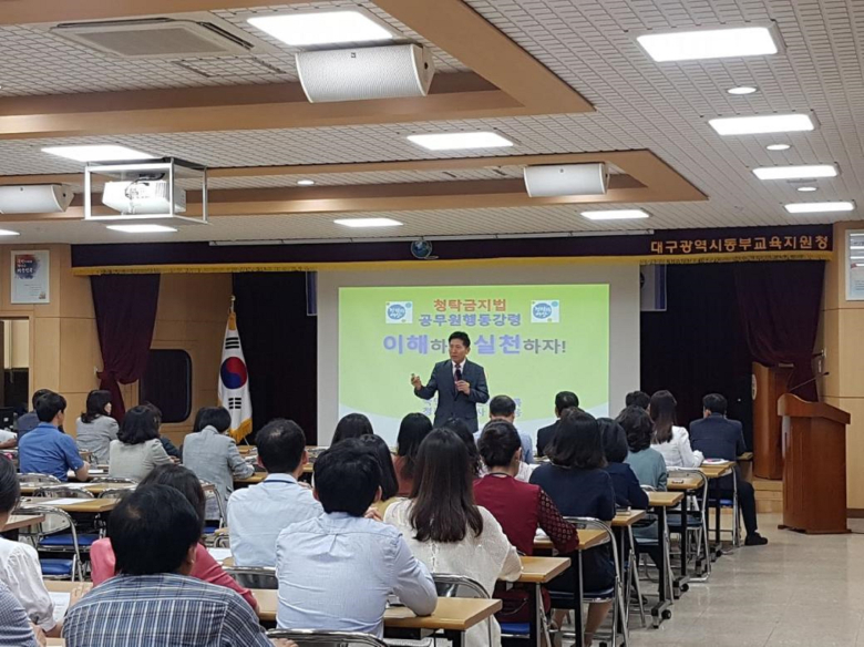 대구 동부교육지원청은 지난 3일 대회의실서 110여명 전 직원을 대상으로 '2019년 청렴 교육'을 실시했다고 지난 5일 밝혔다.이번 교육은 남병웅 대구경북흥사단 평생교육원 원장이 강사로 나섰다.남 원장은 개정된 공무원 행동강령의 주요 내용 및 청탁금지법 위반 사례를 강의했다. 또 이해를 돕기 위해 청렴퀴즈도 함께 진행했다.한편, 동부교육지원청은 청렴 및 시책과제 발국, 지역주민과 함께하는 청렴 캠페인, 청렴 홍보물 제작 및 배부, 전 직원 청렴 교육 이수제 등 다양한 청렴 정책을 추진하고 있다.