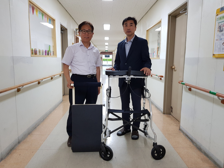 대구교육청은 지난 12일 대구보명학교 육심용 교사가 지적장애 학생들의 건강관리를 돕기 위해 자신이 개발한 운동기구 5대와 U자형 성인 보행기 MK-WS –1 한대를 학교에 기증했다고 18일 밝혔다.시교육청에 따르면 육심용 교사는 평소 지적장애 학생들이 윗몸일으키기를 하는데 어려움이 많다는 것을 알고 이를 돕기 위한 기능성 운동기구를 개발했다.이 운동기구는 신체적 조건에 따른 맞춤형으로 조절이 가능한 등받이가 있어 지적장애 학생들이 혼자서 윗몸일으키기를 할 수 있도록 돕는다.육심용 교사는 "앞으로도 장애 학생들이 꿈을 향해 나아갈 수 있도록 돕는 발명품을 직접 개발 제작해 나눔을 실천하겠다"고 말했다.