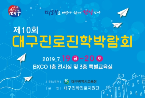 대구시교육청(교육감 강은희)은 이달 19일부터 20일 양일간 대구엑스코(EXCO)에서 최신의 대입정보와 학생 맞춤형 상담을 제공하기 위해 ‘제10회 대구진로진학박람회’를 개최한다.‘어느 여름날, 소나기를 만나다(소중한 꿈을 찾아가는 나의 열정과 기다림)’라는 주제로 운영되는 이번 박람회는 지난 10년간의 경험을 바탕으로 대입 수시모집을 눈앞에 둔 고3 수험생들을 위한 개인 맞춤형 상담은 물론 중학생 및 고등학교 1, 2학년 학생들을 위한 다채로운 진로체험 및 진로탐색 프로그램을 준비했다.