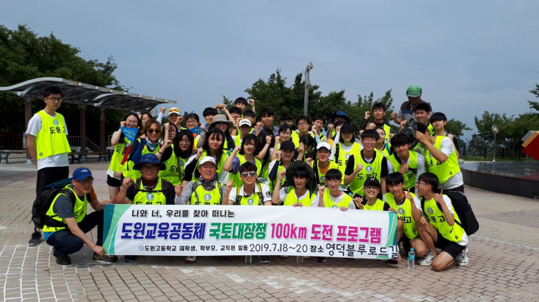 대구도원고가 지난 18일부터 20일까지 희망 학생, 학부모, 교사와 함께 참여하는 '길에서 나와 너를 만나다'라는 구호 아래 도원교육공동체 도보여행을 실시했다.이번 도보여행은 영덕 블루로드길 총 50㎞를 2박 3일동안 걸었으며 학생, 학부모, 교상 등 50여명이 삼사해상공원을 출발해 축산항까지 도보로만 이동했다. 저녁에는 천문 관측과 소감 나누기 등의 시간을 가졌다.학업에 시달리던 학생들은 자연 속에서 체력의 극한을 이겨내며 스스로를 만나고 돌아보는 계기가 됐으며, 친구와 가족 그리고 선생님과 함께 걸으며 고민을 나누고 소통하는 기회가 됐다.이성진 학생(2학년)은 "내가 할 수 있을까하는 의구심도 있었고, 둘째 날 오후엔 발에 물집이 잡혀 포기하고 싶었다. 하지만 친구들과 선생님의 격려로 완주하게 돼 기쁘다. 해냈다는 성취감과 무엇이든 도전할 수 있는 자신감을 가지게 된 계기가 됐다"고 말했다.류시태 교장은 "국토대장정 100㎞ 도전은 목표지점에 이르는 결과에 의미를 두는 프로그램은 아니다. 길 위에서 보낸 모든 시간이 과정이며, 길 위에서 만난 모든 사람이 목적지이다. 자신만의 나침반을 지니는 의미 있는 시간이 됐으니라 생각한다"고 말했다.한편, 도원고는 3년간 총 100km를 걷는 '나와 너, 우리를 찾아 떠나는 국토대장정 100km 프로그램'을 진행하고 있다.