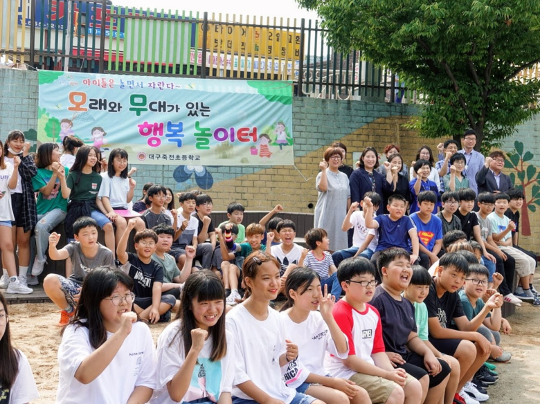 대구시교육청은 대구죽전초 운동장에 놀이시설 '모·무 행복놀이터'를 완공했다고 23일 밝혔다.'모·무 행복놀이터'는 대구교육청 '학교놀이문화 조성학교' 공모 사업의 일환이다.'모래와 무대가 있는 행복놀이터'라는 의미로 전교생을 대상으로 공모를 통해 선정됐다. 지난해 하반기에 공사가 시작돼 학생, 학부모, 교직원, 건축사의 다양한 의견을 수렴해 완공됐다. 개장식은 사전 축하공연으로 5학년 모둠북 동아리 학생들의 연주와 6학년 댄스 동아리 학생들의 댄스 공연이 진행됐다. 시교육청은 학생들이 행복놀이터를 통해 스마트폰 게임에서 벗어나 친구들과 땀흘리며 놀이하는 과정에서 따뜻한 인성을 키우고 배우고 성장하며 더욱 행복한 학교생활을 해 나갈 것으로 기대했다.