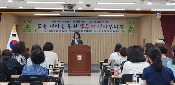 김천교육지원청은 지난 29일 교육지원청 대회의실에서 관내 초등교원 1,2학년 담임교사 및 희망교사 50여명을 대상으로 '한글해득 지도역량 강화 직무연수'를 개최했다.