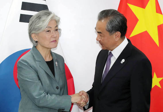 약 45분 동안 진행된 비공개 회담에서 강 장관은 일본의 수출규제 강화 조치로 촉발된 한일 갈등상황에 대해 왕이 부장에게 설명했다.