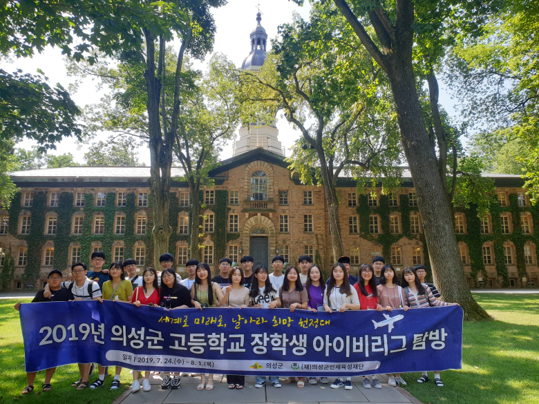 의성군인재육성재단은 군내 고등학교 1학년 학생 25명이 지난달 24일부터 이달 1일까지 6박 9일간의 아이비리그 탐방과 미국 문화체험을 마쳤다고 6일 밝혔다.