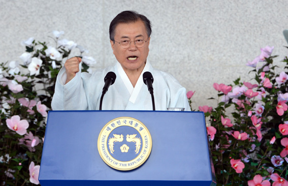 문 대통령은 "평화로 번영을 이루는 평화경제를 구축하고 통일로 광복을 완성하고자 한다"며 "평화경제는 한반도의 완전한 비핵화 위에 북한이 핵이 아닌 경제와 번영을 선택할 수 있도록 대화와 협력을 계속해나가는 데서 시작한다"라고 말했다.