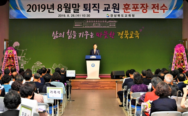 경북교육청이 28일 도교육청 웅비관에서 2019년 8월말 퇴직교원 훈포장 전수식을 가졌다.