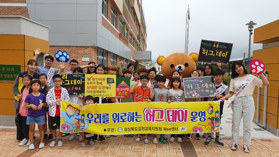 김천교육지원청Wee센터는 지난 6일 운곡초등학교 정문에서 등교하는 학생 600여명을 대상으로 '우리를 위로하는 허그 데이, 하이파이브 데이' 행사를 했다.