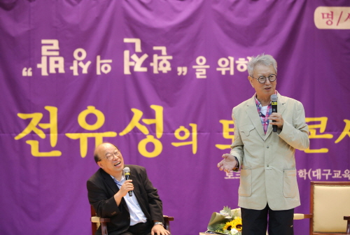 계명문화대가 지난 2일 보건관 동산홀에서 문화기획자 양성학교 교육생, 지역민 그리고 대학생 등 300여명이 참여한 가운데 '발상의 전환을 위하여'란 주제로 전유성 토크콘서트를 개최했다. 이번 행사는 계명문화대가 주관하고 있는 '2019 대구지역맞춤 문화기획자 양성학교'의 스페셜 프로그램의 일환으로 진행됐다. 개그맨 전유성씨는 전 세대가 공감할 수 있는 일상 속에서 독특하고 차별화된 생각과 이야기들로 고정관념 속에 갇힌 참여자들의 사고의 틀을 깼다. 이날 토크콘서트는 1부에서 전유성씨의 대표 아이콘인 '역발상의 아이콘, 아이디어 뱅크'가 만들어 지기까지의 다양한 이야기들을 토크패널인 대구교육박물관 김정학 관장과 소소하게 나눴다. 2부에서는 일반적인 생각으로부터 역발상하는 방법이나 필요성에 관해 함께 다양한 형태로 관객과 소통했다. 토크콘서트에 참여한 권미영(45세, 문화기획자 양성학교 제1기 교육생)은 "평소 우리들의 생활 속에 형식적이고, 틀에 박힌, 그리고 불필요한 것들이 많다는 것을 다시 한번 깨닫게 됐다"며 "문화기획자가 갖춰야 할 가장 기본적인 소양인 관찰력부터 키워야 겠다"고 말했다. 한편, 계명문화대 문화기획인 양성학교는 기본학기 총 24회 가운데 4회가 진행됐으며, ▲9일에는 매일신문 조두진 문화부장의 '문화, 대구의 새로운 미래' ▲16일 내 마음은 콩밭 서민정 대표의 '창작자와 기획자'라는 주제로 강연이 지속된다.