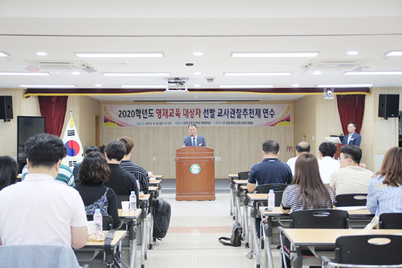 김천교육지원청은 지난 6일 교육지원청사 대회의실에서 관내 초·중학교 및 고등학교 영재업무 담당교사 60여 명을 대상으로 '2020학년도 영재교육대상자 선발을 위한 교사관찰추천제 연수회'를 개최했다.