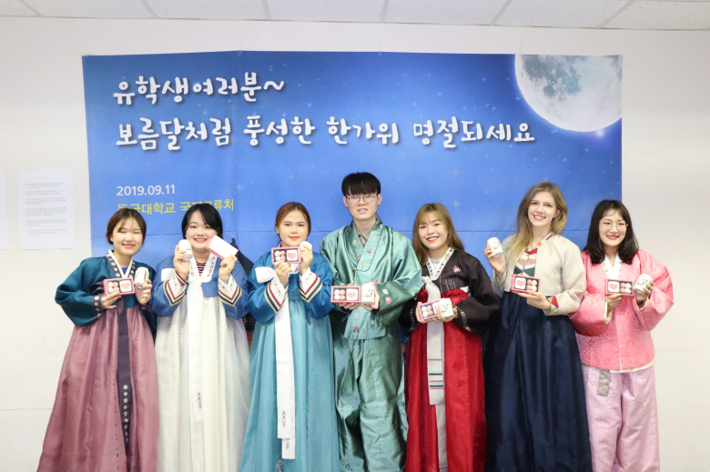 동국대학교 경주캠퍼스가 지난 11일 교내 백주년 기념관에서 외국인 유학생과 함께하는 추석 행사를 개최했다.이날 행사는 동국대 경주캠퍼스에 유학중인 외국인학생들에게 한국의 전통 명절인 추석을 알리고 유학생들의 한국 문화 적응을 돕기 위해 마련됐다.불가리아, 말레이시아, 베트남 등 다양한 국가에서 온 유학생들은 한국 전통음식인 떡과 식혜를 맛보고 한복 입어보기, 동궁과 월지를 배경으로 한 포토존 촬영 등을 통해 추석의 의미를 배우고 한국의 전통문화를 즐겼다.