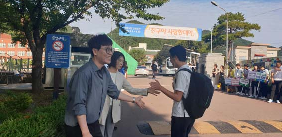 '자살예방의 날(10일)'을 맞아 실시한 이번 캠페인은 아침 등굣길 학생과 교사들이 하이파이브를 주고, 받으며 정서적 유대감을 형성하고 생명을 사랑하고 존중하는 분위기를 조성했다. 사제지간의 손뼉 부딪히는 소리는 등굣길 발걸음을 가볍게 하고, 손과 손의 온기가 마음까지 전해져 따듯하게 했다.