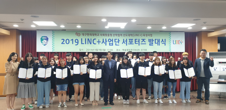 대구한의대학교 LINC+사업단은 지난 9일 학술정보관 세미나실에서 LINC+사업 홍보를 위해 활동할 학생 서포터즈에게 임명장을 수여하고 발대식을 가졌다.