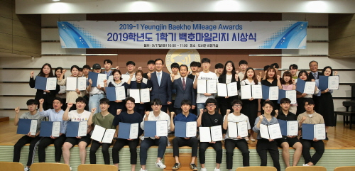 영진전문대는 지난 17일 교내 도서관 시청각실에서 '제1회 백호마일리지 어워즈'를 열고 재학생 332명에게 총 3843만원의 장학금을 지급했다고 밝혔다.'백호마일리지'는 영진전문대가 연간 1억원의 장학금을 내걸고 재학생들의 면학 분위기 조성과 취창업 역량을 끌어올리기 위한 제도다.대학이 마련한 비교과프로그램인 백호튜터링, 영진자율향상프로그램(YAP), 진로 및 취창업 캠프, 경진대회, 특강 등에 학생들이 자발적으로 참여한 실적과 성적을 마일리지로 쌓고, 이를 장학금으로 수여한다.영진전문대는 이를 통해 인성과 적성을 겸비한 글로벌 인재를 육성할 계획이다. 학기별로 백호튜터링과 영진자율향상프로그램(YAP) 등 비교과 활동에 적극 참여한 최우수자에게 러닝(Learning)마스터를, 취창업 캠프와 기업 특강, 자격증 취득 등에 앞장선 최우수 학생에겐 커리어(Career)마스터로 선정 각각 1백만 원을 지급한다.이날 백호마일리지 어워즈 시상에선 윤지현(컴퓨터응용기계계열 2년) 학생이 러닝(Learning)마스터에 선정됐다. 또 커리어(Career)마스터엔 박성국, 김건우, 윤석준, 박병재(신재생에너지전기계열 2학년) 등 5명이 최고점을 동시에 획득해 장학금 100만원을 받았다.윤지현 학생은 “백호튜터링에 참여하며 목표로 했던 성적 향상은 물론 국가자격증도 취득할 수 있어서 좋았는데, 마일리지 장학금까지 받아서 기분이 참 좋다”며 “학교서 마련한 여러 학습 프로그램에 참여하면서 대기업으로 조기 취업할 수 있겠다는 자신감도 생겼다”고 말했다.최재영 총장은 “학생들이 강의실뿐만 아니라 튜터링이나 특강에 참여하는 등 다양한 비교과프로그램에 적극적으로 참여하면서 기업 현장에서 요구되는 맞춤형 인재로 성장할 수 있도록 백호마일리지 어워즈를 마련했다”면서 “월드클래스 인재로 성장하는 우리 학생들을 응원하고 격려하는데 더 많은 지원을 할 수 있도록 백호마일리지 장학금을 내년에 더욱 확대하도록하겠다”고 했다.