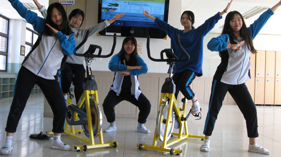 3층 'Spin Bike 자전거'는 실내 유산소 운동인 스피닝을 할 수 있어 학생들이 날씨에 영향 받지 않고 신체활동을 할 수 있다.