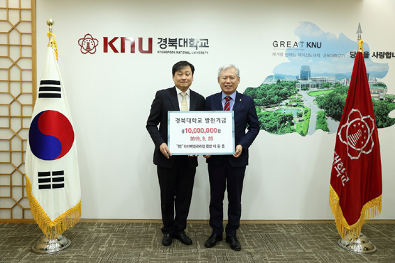 이준훈 아이백안안과의원 원장이 지난 25일 김상동 경북대학교 총장을 방문해 발전기금 1000만원을 전달했다. 전달된 발전기금은 '안과 학교실기금'으로 적립돼 경북대 의과대학안과학교실 발전을 위해 사용될 예정이다.