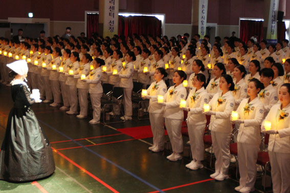 이날 간호학과 2학년 228명은 나이팅게일의 숭고한 정신을 엄숙히 새기는 촛불의식과 나이팅게일 선서를 낭독했다. 선서식에는 정창주 총장과 신용분 경북간호사회장을 비롯 내외빈, 간호학과 학생과 학부모 등 1000여 명이 참석했다.