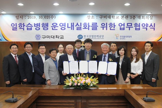 협약식에는 배장근 구미대 공동훈련센터장과 김태정 한국산업인력공단 경북지사장, 박선진 한국폴텍Ⅵ대 영주캠퍼스 공동훈련센터장을 비롯한 실무자 10여 명이 참석했다. 이번 협약으로 3개 기관은 일학습병행 확산을 비롯한 지역경제 활성화와 일자리 창출을 위해 효율적인 일학습병행 사업을 공동 추진할 수 있을 것으로 기대하고 있다.