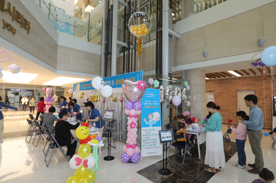 이날 병원 로비 1층에서 혈압, 혈당, 체지방분석 측정을 통해 건강 상담을 제공하고 소아청소년과 병동과 각 층 외래를 돌며 준비한 다과를 대접했다.