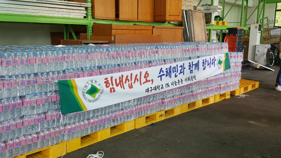 대구대는 7일 이번 태풍 피해가 큰 영덕군과 울진군에 방문해 각각 1만 병의 생수를 추가적으로 전달했다.