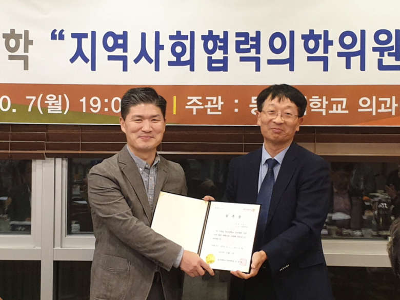 동국대학교 의과대학은 지난 7일 오후 7시 경주지역 20개 병·의원 원장을 초청하여 “지역사회 협력 의학교육위원회”를 구성하고 워크숍을 개최했다. 이날 워크숍은 동국대학교 의과대학과 경주지역 의료계와의 협력을 강화하여 의과대학과 지역의료의 발전을 위해 개최된 것으로 의과대학생들의 의료직업 체험과 의학교육 발전에 대한 다양한 의견이 제시되었다. 특히 이날 워크숍에서는 경주지역 20개 병·의원 원장 32명으로 구성된 ‘지역사회 협력 의학교육위원회’를 발족하고 위촉장을 수여했다. 위원장으로 위촉된 경주시 의사협회 이홍우 회장(서울내과의원 원장)은 “동국대 의과대학 학생들에게는 지역 의료현장을 직접 체험하고 탐구하는 기회를 제공하고 지역 의료계는 학생 지도를 통해 꾸준히 역량을 높일 수 있을 것”이라며 “지역 의료계는 의학교육 발전을 위해 동국대학교 의과대학에 대한 협력과 지원을 강화하겠다”고 소감을 밝혔다. 서정일 동국대 의과대학장은 “동국대 의과대학은 지역 보건의료와 관련 분야에 대한 지속적인 관심과 상호작용을 통해 지역거점대학으로서 역할을 다 할 것”이라며 “이를 위해 올해 11월부터 의예과 2학년생들을 대상으로 ‘의료직업체험’ 교과목을 신설 운영할 것”이라고 말했다. 한편 경북에서 유일한 의과대학인 동국대학교 의과대학은 역량 있는 의료인, 지혜를 갖춘 의료인, 자비로운 의료인, 정진하는 의료인이라는 교육목표를 가지고 지난 1986년 첫 신입생을 맞이했으며 경주라는 지역적 한계를 극복하고 지난 30여 년 동안 1200명이 넘는 의사를 배출해 지역사회 의료 발전과 지역민들의 건강증진을 위한 중추적인 역할을 다하고 있다.
