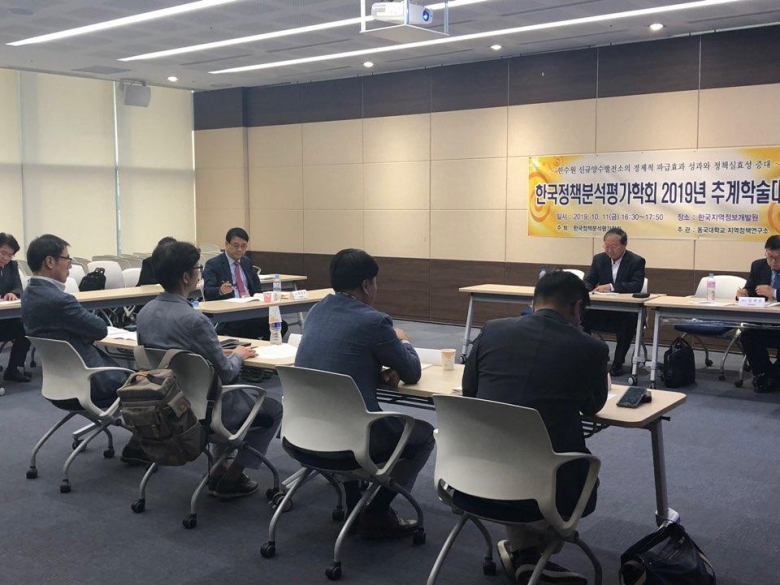 한국정책분석평가학회 추계학술대회가 지난 11일 서울 상암동 한국지역정보개발원에서 개최됐다.한국정책분석평가학회가 주최하고 동국대 경주캠퍼스 지역정책연구소가 주관한 이번 학술대회는 “정책분석평가와 사회적 가치, 방법론적 재고찰 Ⅲ - 공공투자사업평가”이란 주제로 개최됐다.‘정책실효성 증진’ 섹션에서 ▲김규호 경주대 교수가 ‘양수발전소 건설에 대한 수용성과 경제적 파급효과’ ▲박병식 동국대 지역정책연구소장가 ‘정부정책의 실효성 증진을 위한 정책감리제도의 도입방안’을 발표했고, ▲장인봉 신한대 교수, ▲이석민 수원대 교수, ▲명성준 경상대 교수, ▲홍성만 안양대 교수가 토론했다.박병식 동국대 지역정책연구소장은 “현행 정부업무평가제도가 총괄평가와 기관평가를 중심으로 이루어져 정책에 대한 체계적 평가가 부족하므로 정책감리를 도입한다면 현행 평가제도의 한계를 보완할 수 있어 정책의 실효성을 크게 증진시켜 나갈 수 있을 것”이라고 주장했다.한국정책분석평가학회는 공공성, 공정성 등 사회적 가치의 중요성을 고려하여 2019년 한 해 동안 ‘정책분석평가의 사회적 가치, 방법론적 재고찰’이라는 대주제하에 춘계, 하계, 추계, 동계학술대회를 개최하고 있다.