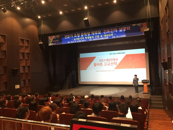 이날 참석한 한 학부모는 "입시정보가 알차 자녀의 입시준비에 많은 도움이 됐다"며 "농어촌 학생들도 충분히 명문대에 진할 할 수 있고 훌륭한 시설과 여건을 갖춘 지역 고등학교에 입학시키는 것이 학생의 행복이나 성장에 도움이 되고 지역발전에도 도움이 된다고 생각한다"고 말했다.